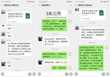 为了保障LETOU国际米兰官网2827名学生“选得上,学得了”,所有辅导员和带班班主任认真领会学校关于线上教学的要求,做好任课老师和班级同学的传声筒,不让一个学生掉队。为了更好地掌握疫情防控期间学生存在的困难与需求,帮助有需要的同学们暂缓燃眉之急,陈秀春老师发动专兼职辅导员通过微信、电话、QQ等方式与同学们和家长取得联系,及时了解学生们存在的问题,是否有稳定的网络、是否有合适的设备、是否要用流量等,确保不遗漏任何一名同学,确保详细的了解到每一名同学的情况,为同学们排忧解难。