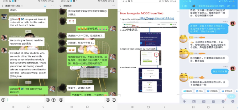 在线上教学准备期间,赵楠老师从网课小白开始,反复比对教学平台,甄选课程资源,调整授课计划,最终选用了清华大学教授团队的精品课程。同时她使用QQ班群实现签到、作业、答疑等教学辅助功能。测试期间,赵老师在班群发布了积极应对新学期的倡议书,获得同学们的满屏支持。她深有感触地说:“三周的努力付出体现了学校和老师对同学们的高度负责,也获得了同学们的理解和支持。”