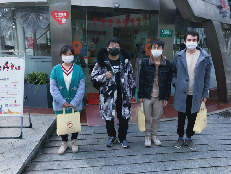 肖开提艾尼同学:“嗯嗯,有。梅陇献血点是采取分批预约献血的形式进行采血的,我们同校的6个同学几个一起在3月7日预约了10号的献血。学校还为我们安排了专车,我们每一个人出门前都量了体温;上车后,隔开而坐;全程都佩戴着口罩。”