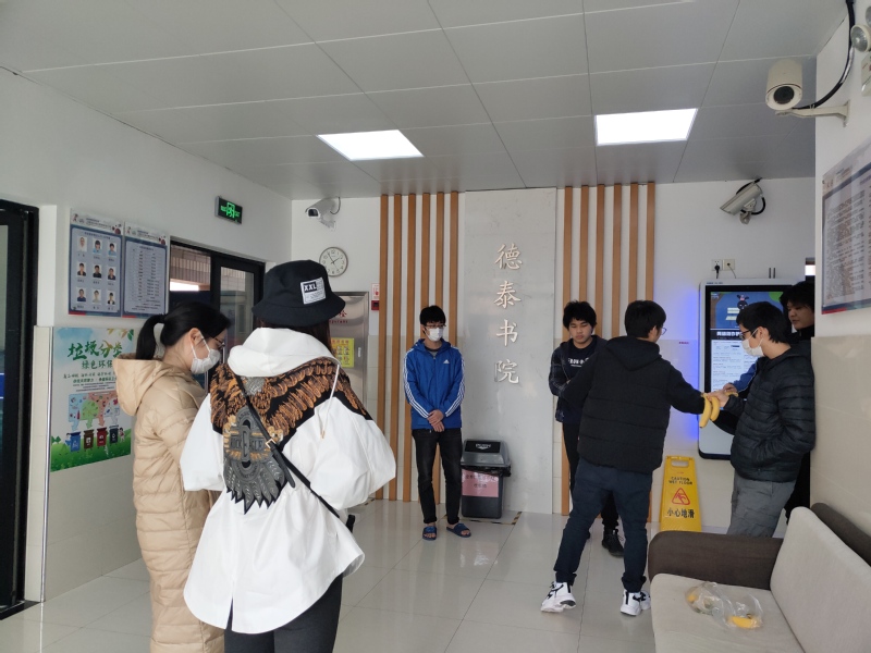 首先,两位老师来到研究生公寓(女生宿舍),逐一到女生寝室了解同学生活情况和留校原因,询问同学们对于留校期间是否遇到什么困难,以及生活上的诉求。关注留校生的心理,并及时给予了建议及疏导。同时就大四同学实习的问题,提出建议解决办法,可以先自己找好工作单位和面试好工作岗位,等疫情过去了,就以正常投入工作生活了。针对留学考试问题,提出可以自己在宿舍学习,由于国外疫情严重,可以缓一年再考虑出国,先实习一年,对出国留学也有一定的帮助。并且,提倡大家趁天气不错时,多多出宿舍到外面操场或者校园活动,同学之间相互交流,多锻炼,养成良好的生活作息。