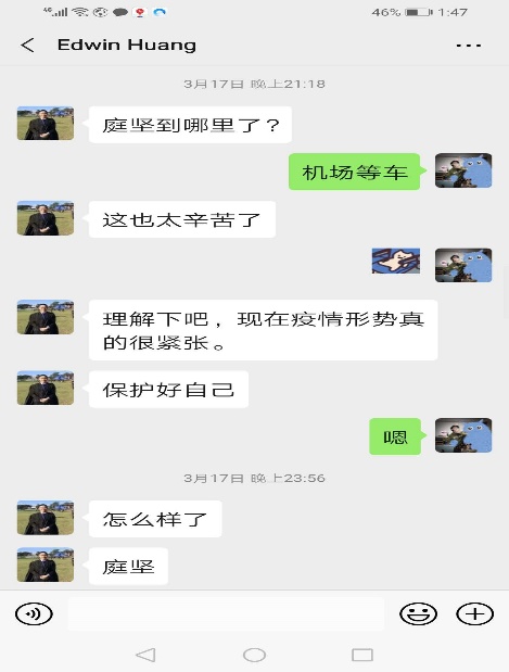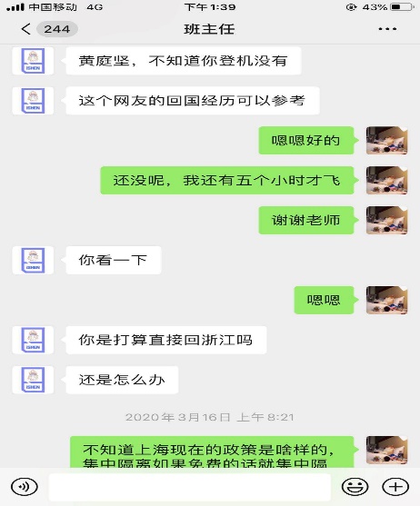 这次新型冠状病毒的爆发是一场全球性的灾难,相信很多同学此前都在犹豫是否回国,回国的话虽然各方面都会比较安心,但是回国对学业造成的负担跟路上的风险以及给国内增添负担等都是我们不愿意看到的。坦白来讲,这是一场所有人都没有预料到的灾难,我们的每一个选择都存在很大的不确定性,想要做出一个决定确实比以往要难的多,代价也很大。于国贸1722黄庭坚而言,他选择了暂时性的休学回国,也是冒着很大的风险回到了祖国,目前正在接受集中隔离。以下是他个人回国的心路历程: