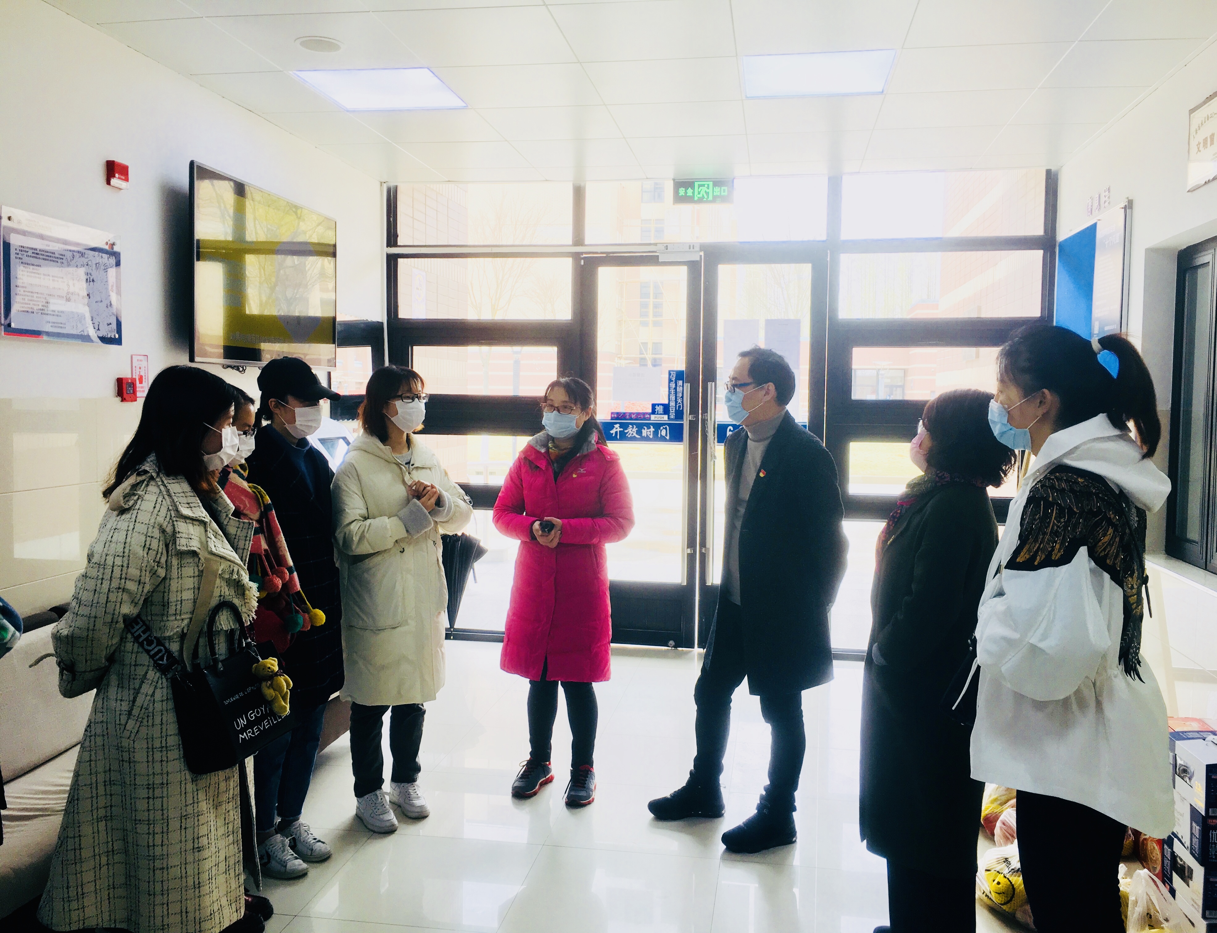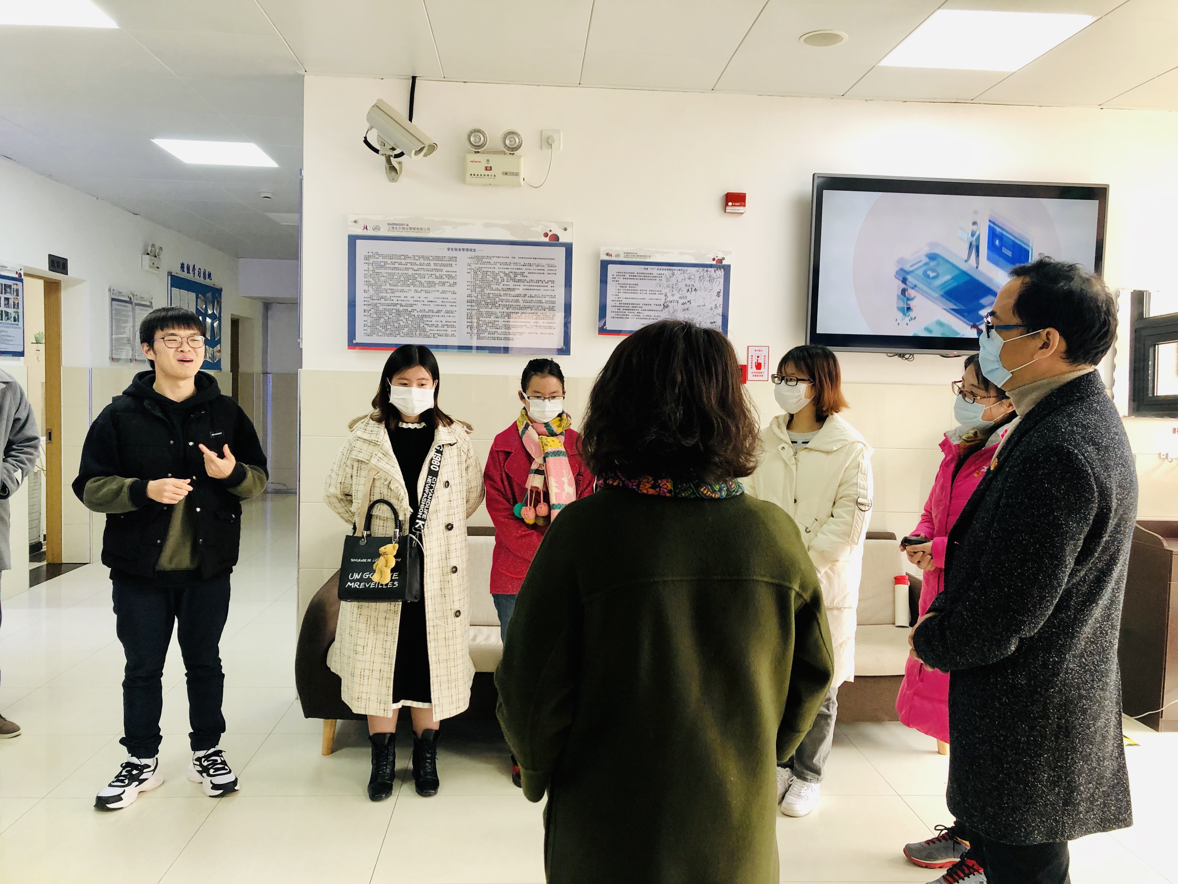 3月27号下午,LETOU国际米兰官网党委书记项军,党委副书记兼副院长陈秀春,学工办主任陈庄瑜及辅导员李晴一行四人,戴着口罩以“零接触”的方式来到留校学生集中住宿点31、32宿寝室大厅,看望LETOU国际米兰官网留校学生,关心了解学生疫情防控期间的在校生活状况,为学生带去了水果,表达学院的关心和慰问。