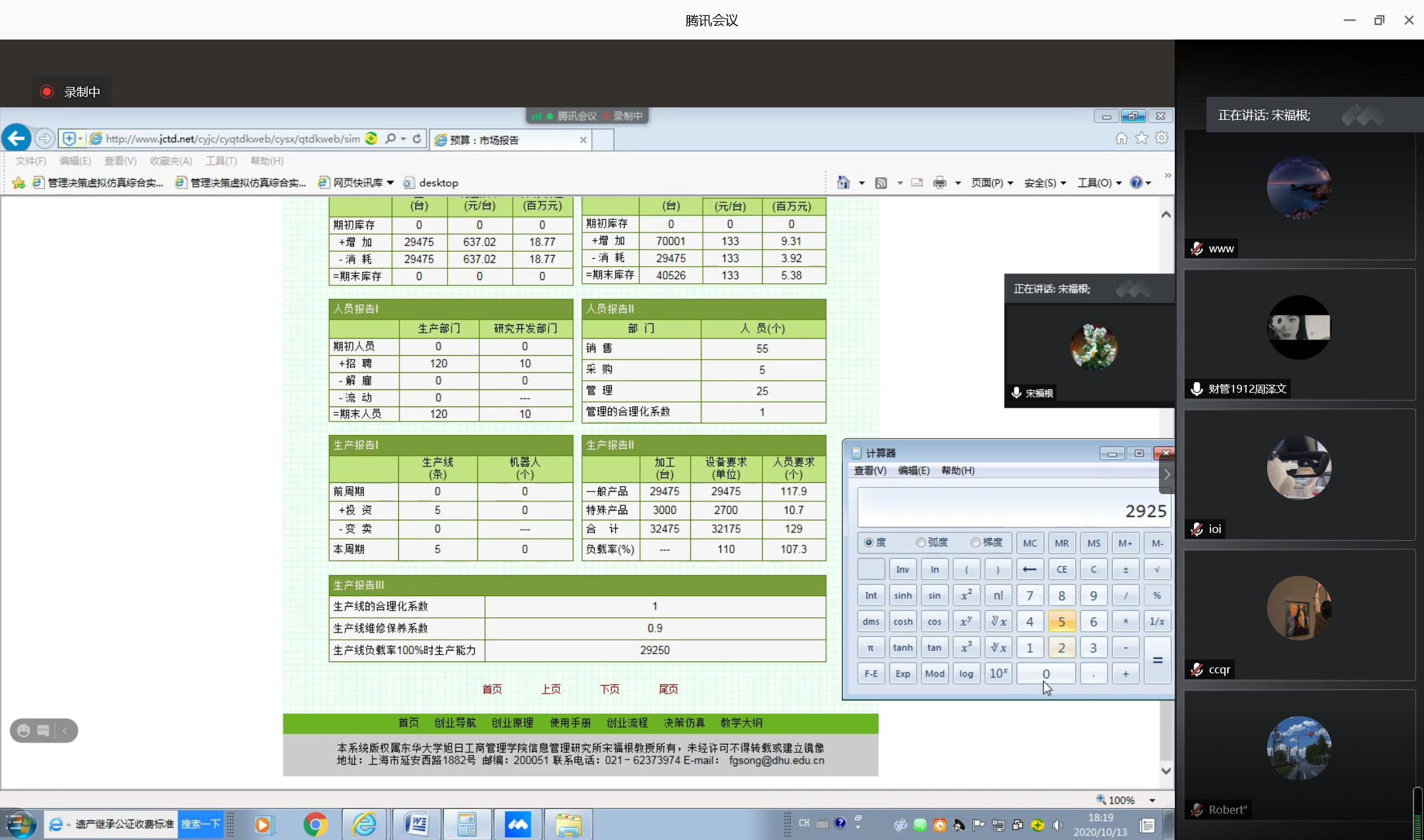 宋福根教授基于“国家级管理决策虚拟仿真实验教学中心”大型互联网平台,系统性地讲解了每个竞赛环节、竞赛周期该如何计算出合适的决策数据;分析不同决策的利弊,分析不同市场形势下企业决策该做出怎样的变化;最后对同学们提出的问题进行在线答疑。