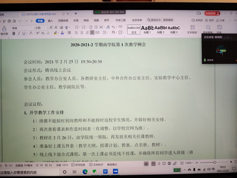 参会人员:教学办公室人员、各教研室主任、中外合作办公室主任、实验教学中心主任、学生办公室主任、教学副院长等。