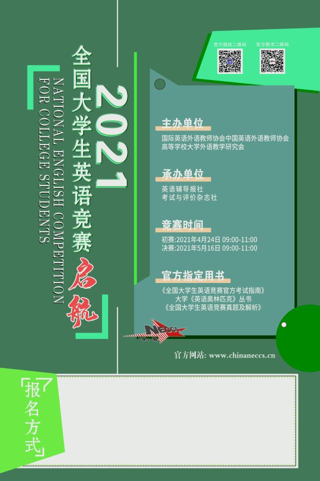 (1)打开全国大学生英语竞赛官网直接进入报名网站https://www.saikr.com/,报名时间截止至2021年3月30日。