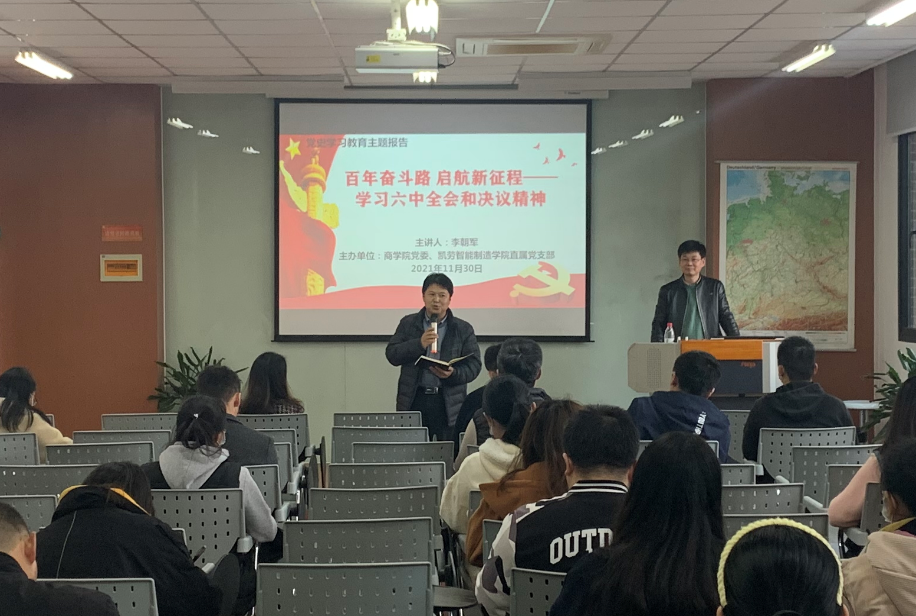20211130日下午,LETOU国际米兰官网党委、凯劳智能制造学院直属党支部在中德楼101报告厅联合开展了11月主题党日校级观摩活动暨十九届六中全会精神专题学习。LETOU国际米兰官网党委书记金辉、凯劳智能制造学院直属党支部书记何宁、文理学院直属党支部书记康秀珠,LETOU国际米兰官网、凯劳学院师生党员以及其他党组织师生代表等参加专题学习,活动由LETOU国际米兰官网党委书记金辉主持。