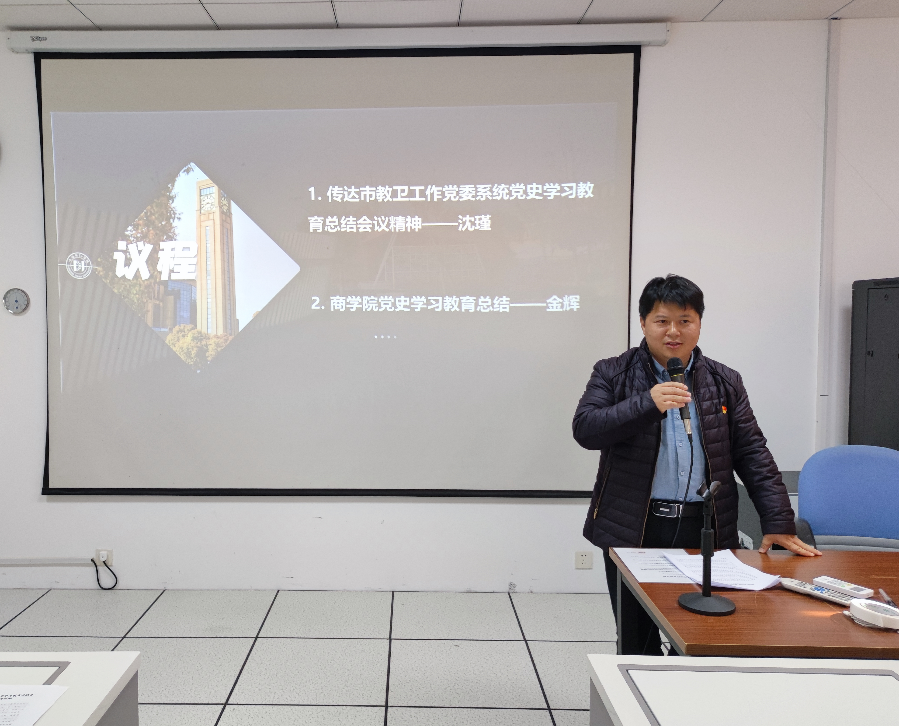 会议首先由沈瑾传达上海市教卫工作党委系统党史学习教育总结会精神。沈瑾指出,我们要不断巩固拓展党史学习教育成果,结合学院实际,充分调动广大教职工积极性,凝聚起学院高质量发展的强大动力,推动学院各项工作的发展。