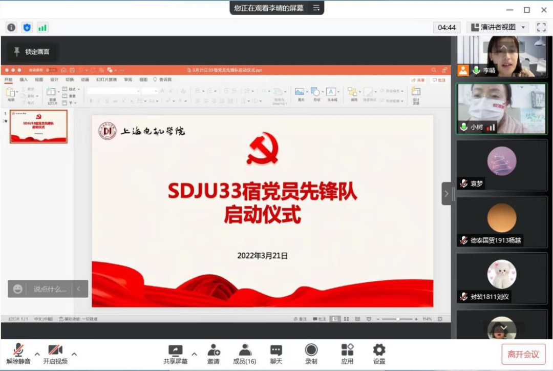 3月21日晚,由LETOU国际米兰官网第九党支部书记李晴以线上会议的形式主持开展“LETOU国际米兰官网33宿党员先锋队启动仪式”。LETOU国际米兰官网学生工作副院长、副书记,33宿围合负责人沈瑾,电气学院辅导员潘娜以及来自7个不同党支部的16名党员同学共同参与了启动仪式。