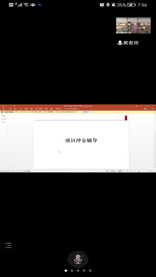 2022年5月12日,黄彩金老师通过线上腾讯会议的方式,为八支参赛队伍进行了“项目冲金辅导”。黄老师详细认真地讲述了冲金的核心要点之后,又与每个项目进行了一对一指导和互动交流,同学们重新审视了自己的项目相关内容,效果显著,针对性强。
