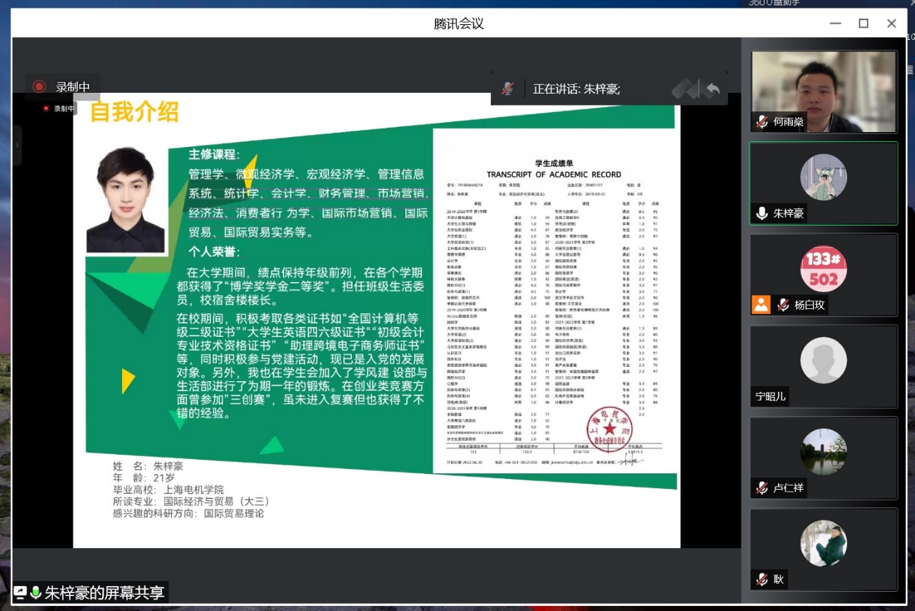 夏令营活动中,首先,耿裕清副教授就学院和学科进行了详细的介绍,帮助同学们更好地了解学院和学科。接着,卢仁祥教授针对研究生招生与培养政策,进行了深度的解读,让同学们清晰了国际商务专业硕士点“做什么、考什么、学什么”。然后,选拔入营的同学们分别进行了能力展示,并且表达了对在LETOU国际米兰官网进行进一步深造的向往。最后,同学和老师们进行了密切的自由交流,对学生们关心的问题进行了详细的解答。