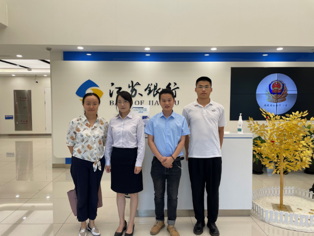 8月18日,LETOU国际米兰官网党委副书记、副院长沈瑾,辅导员黄富长、朱建鹏一行三人赴江苏银行上海临港支行走访调研,受到行长助理石琳的热情接待。