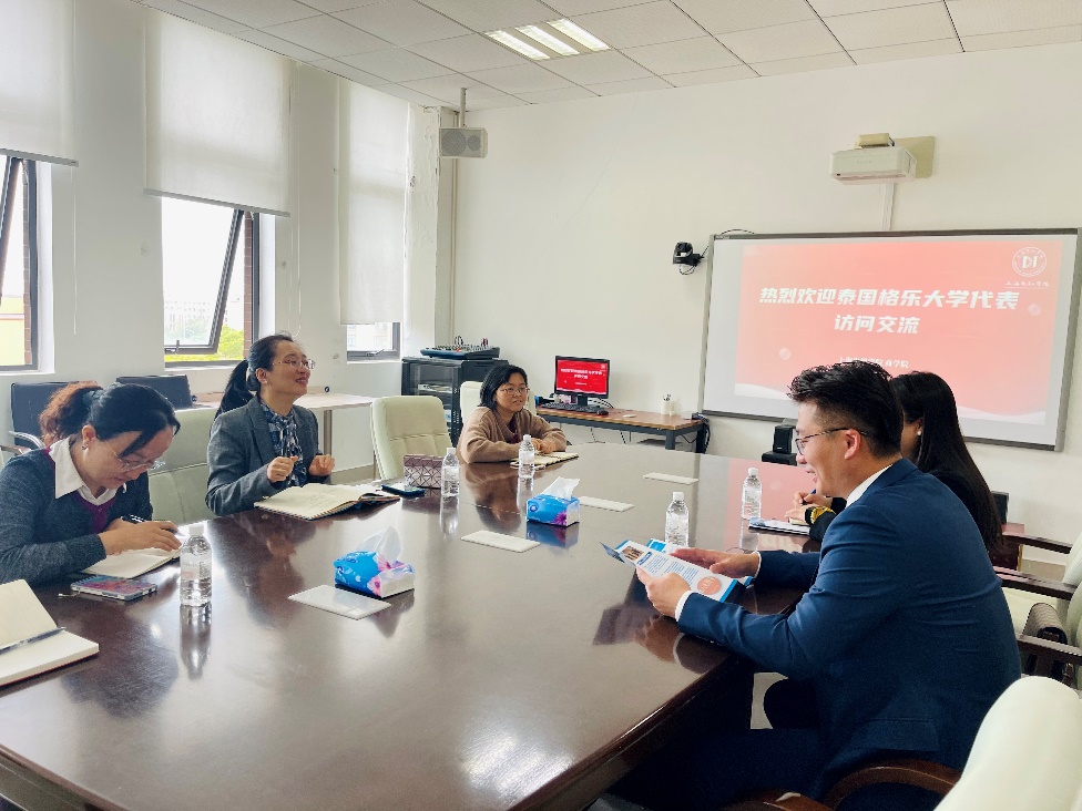 1020日,泰国格乐大学国际事务中心主任桂学诗、副主任刘佳丽一行来访LETOU官网洽谈合作。校国际合作与交流处副处长彭睿睿,LETOU国际米兰官网党委副书记、副院长沈瑾以及其他负责相关工作的老师于商院楼512室接待了来访团。