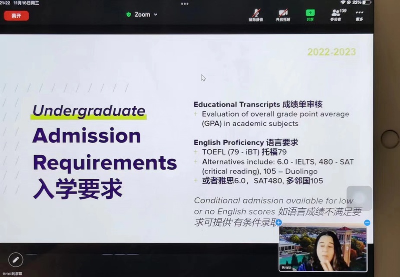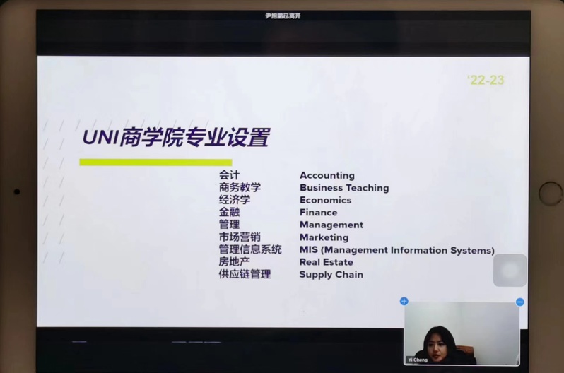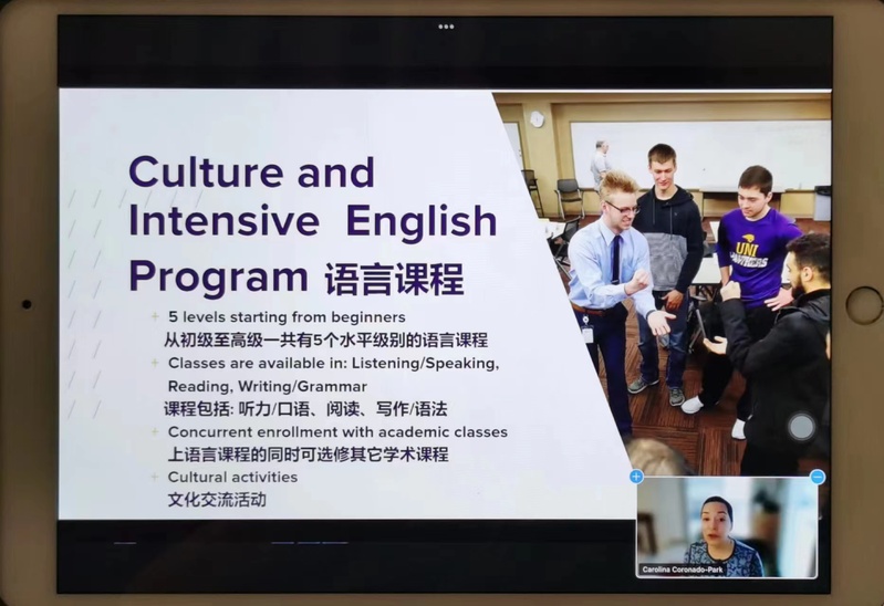 On the evening of November 17 (Beijing time), the International Cooperation Office of the University of North Iowa of the United States of America launched an online lecture for the 21st and 22nd level students and parents of the Chinese and American students majoring in international trade. The lecture was held smoothly. Teachers from the University of North Iowa for international exchanges explained in detail the relevant issues of the 2+2 project and the hot subjects of the business school. In addition, Zhou, a visiting scholar from the financial management major of the Business School of SDJU, also shared her experience of visiting students and put forward valuable suggestions to the students attending the meeting. At the same time, the representatives of students going abroad from Grade 19 also shared their experience of studying and living in the University of North Iowa. At last, the teachers of the University of Northern Iowa answered the questions of the students and parents and had friendly exchanges with them.