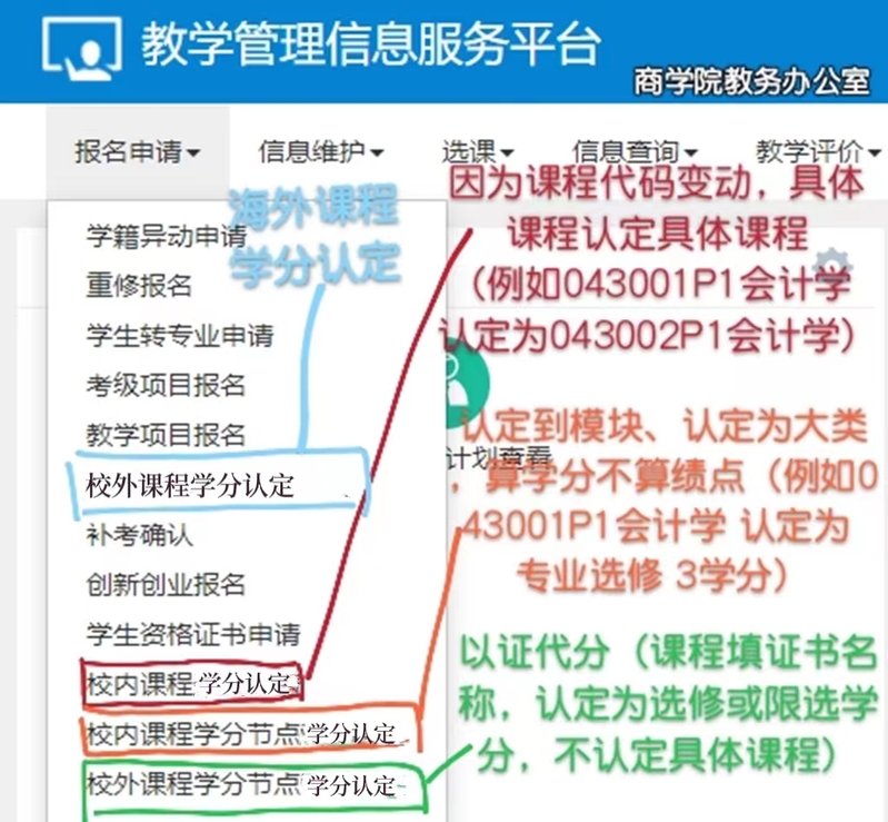 1. 申请时,替代说明填写:学分认定 或 以证代分,字数过多会申请失败。