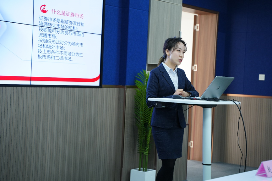长江证券上海临港新片区营业部渠道负责人文雯从活动目的、活动概述、活动细则、活动奖励等方面对本次大赛进行了解读,并与现场学生做互动交流。
