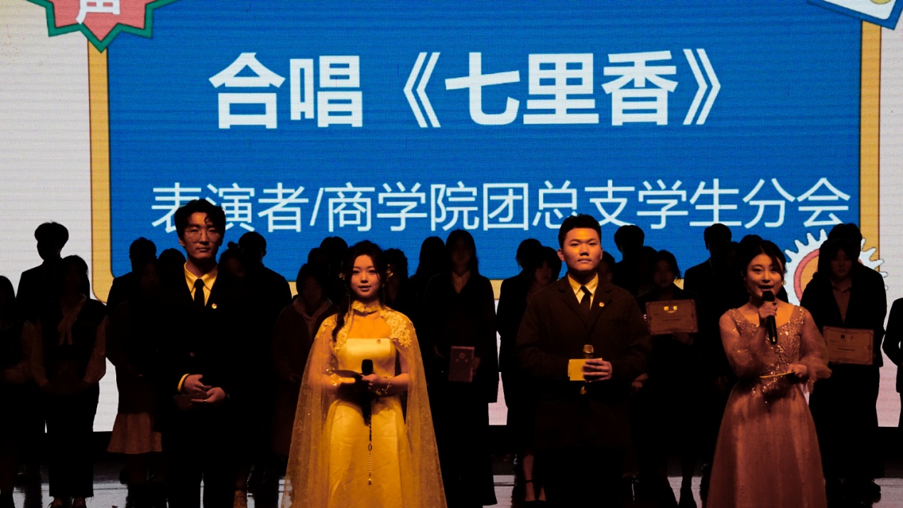 本次晚会以“逐梦商院,赓续前行”为主题,以“少年风华正茂,绽放青春风采”、“艺术浇灌心灵,歌颂灵魂不朽”和“踔厉奋发前行,谱写壮美华章”为三大篇章,展现商院青年的昂扬热情和青春风采。