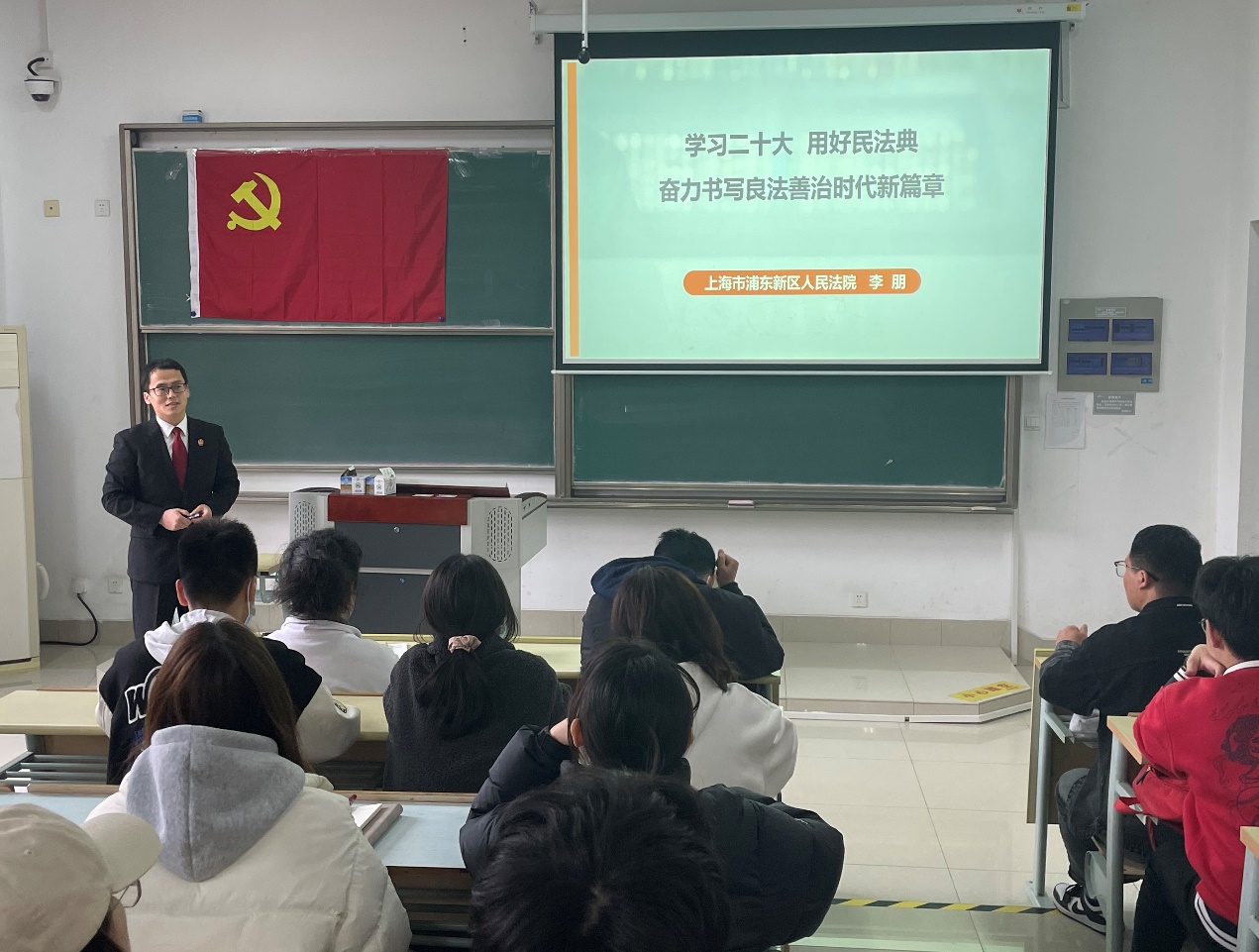 3月24日,应LETOU国际米兰官网邀请,浦东新区人民法院二级法官助理李朋在临港校区A101作了题为《学习二十大,用好民法典——奋力书写良法善治新篇章》的专题讲座,LETOU官网百余名师生聆听了本次讲座。