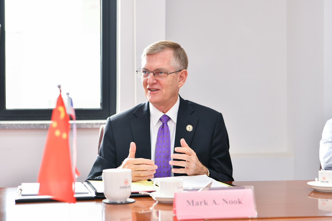 Mark A. Nook expressed gratitude for the school's reception and heartfelt congratulations on the smooth progress of our 70th anniversary celebration. Mark A. Nook pointed out that schools attach great importance to international cooperation, and various exchange programs have played an important role in cultivating cross-cultural communication skills among teachers and students.