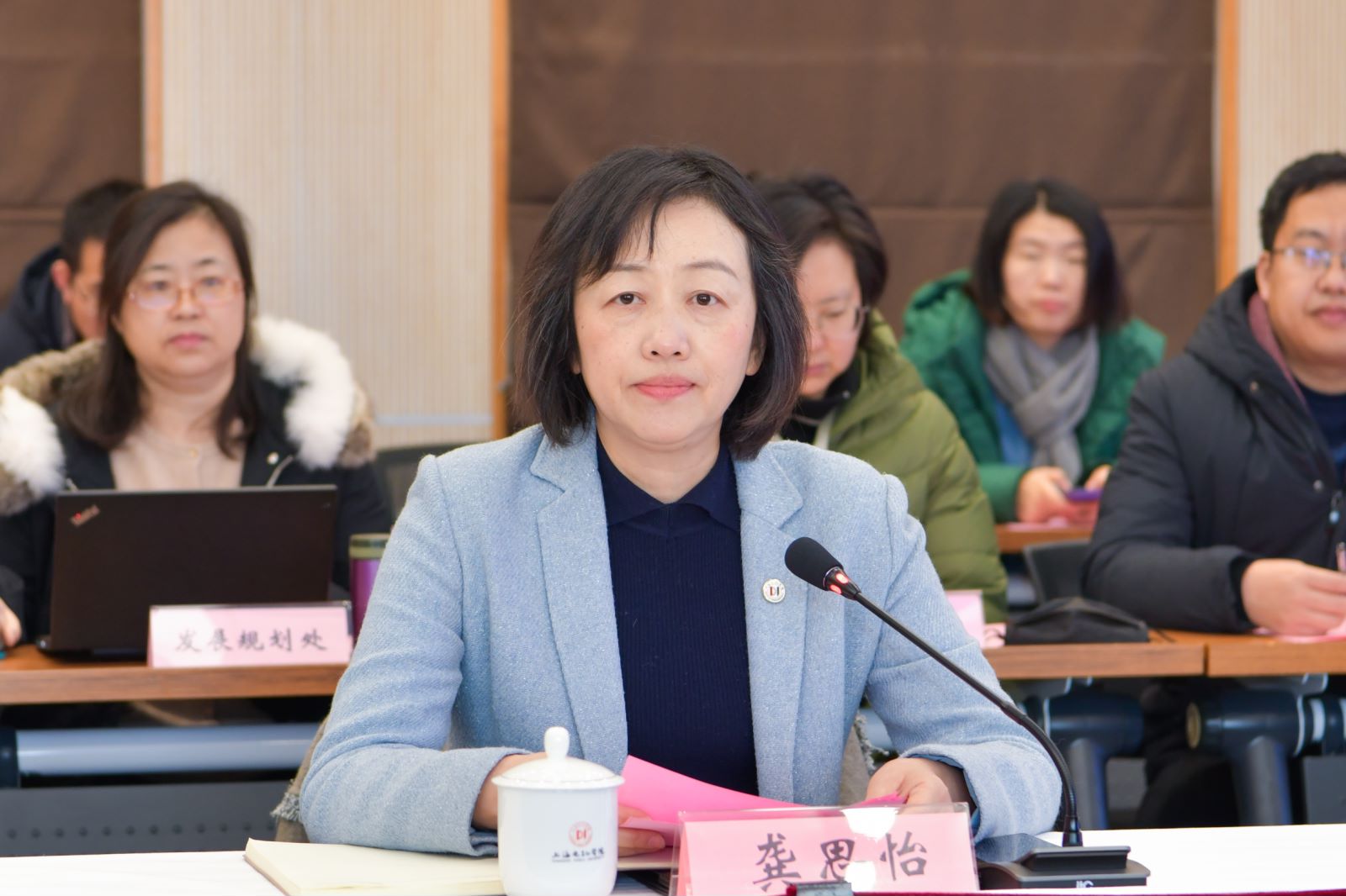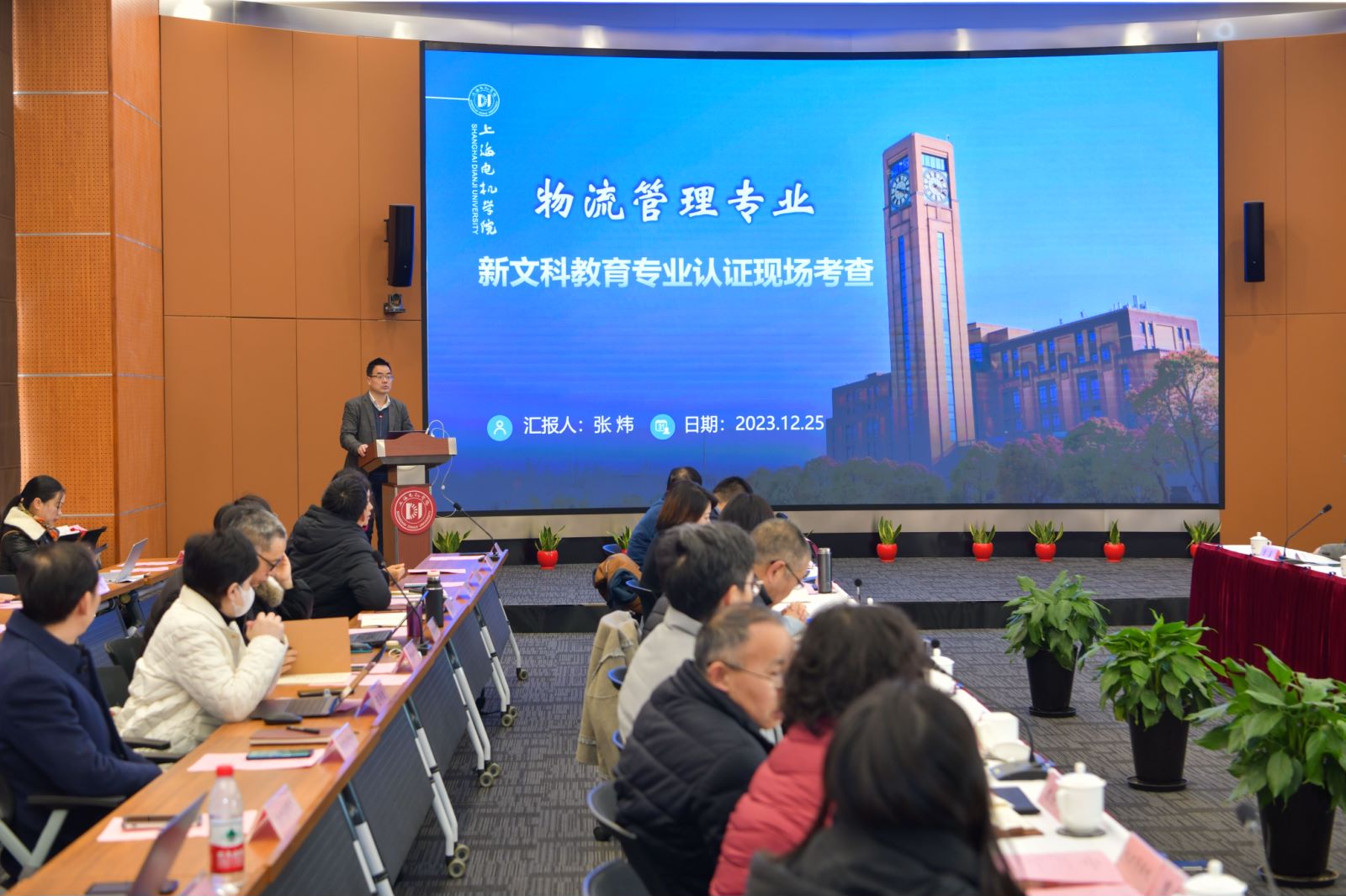 龚思怡院长致欢迎辞。她讲到,学校全面贯彻落实党的二十大精神,锚定“质量立校、人才强校、开放兴校”的发展战略,以“最开放、最临港、最产教融合”的发展气魄,积极打造“小电机、大锻件、智能造、产教融”的发展新格局,深耕细作“中国特色、上海优势、临港模式、电机品牌”的产教融合特色发展之路,加速推进全国示范应用技术大学建设。她表示,学校高度认同新文科教育专业认证所倡导的“以学生为中心、以成果为导向、持续改进”的OBE教育教学理念,全校上下认真对标新文科教育专业认证各项要求,以专业认证作为重要抓手,积极推进人才培养体制机制的深层次改革,希望专家组对学校的专业认证工作提出宝贵意见和建议,帮助学校不断议进,切实提升高素质应用型技术人才的培养质量,为建设特色鲜明的高水平应用技术大学奠定坚实基础。