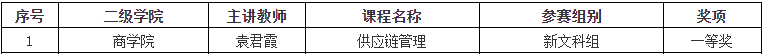 在袁君霞老师看来,教育不仅仅是传授知识,更是点燃学生内心的火焰,激发他们的求知欲和创造力。因此,要始终秉持着“以学生为中心”的教学理念,不断探索适合学生成长的教学方法,力求让学生在学习过程中能够感受到老师的热情和用心,在轻松愉悦的氛围中收获知识和成长。她所讲授的《供应链管理》课程是物流管理专业核心课程,得到了选课学生的一致好评。