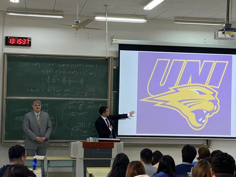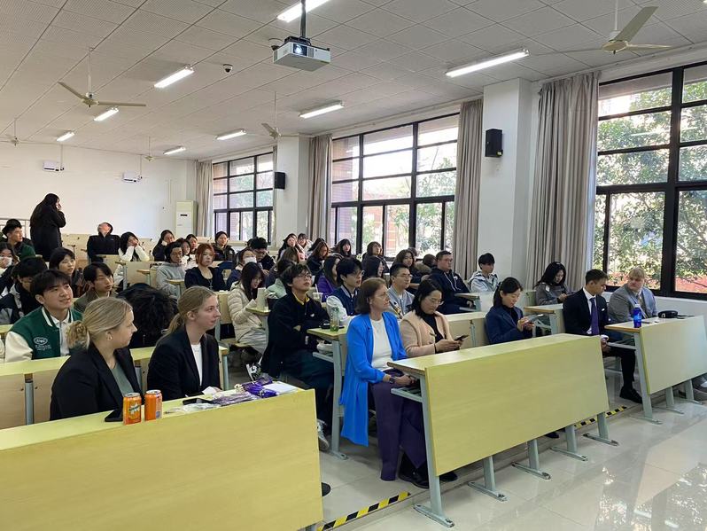 On March 17th, Beijing time, Mary Connerley, Dean of the Business School at the University of Northern Iowa in the United States, and Professor Cheng from the International Office, led four outstanding American student representatives from the Business School to visit the School of Business at Shanghai Dianji University. Under the guidance of Professor Wang and Professor Cai, the responsible persons for China and the United States, a lecture was held for professional students from China and the United States.