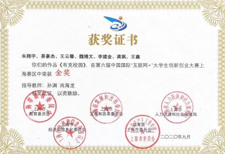 第六届中国国际“互联网+”大学生创新创业大赛上海赛区金奖 | 第十二届“挑战杯”上海市大学生创业计划竞赛银奖 |