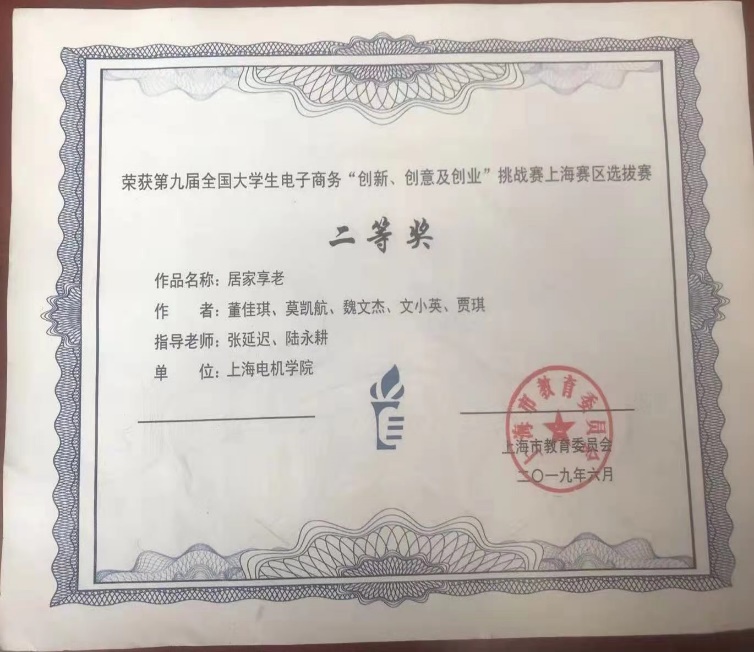 全国大学生智慧供应链创新创业挑战赛二等奖 | 第九届全国大学生电子商务“创新、创意及创业”挑战赛上海赛区挑战赛特等奖 |
